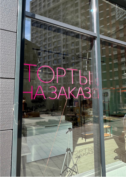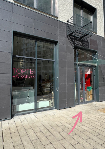 с левой стороны вывеска "ТОРТЫ НА ЗАКАЗ"